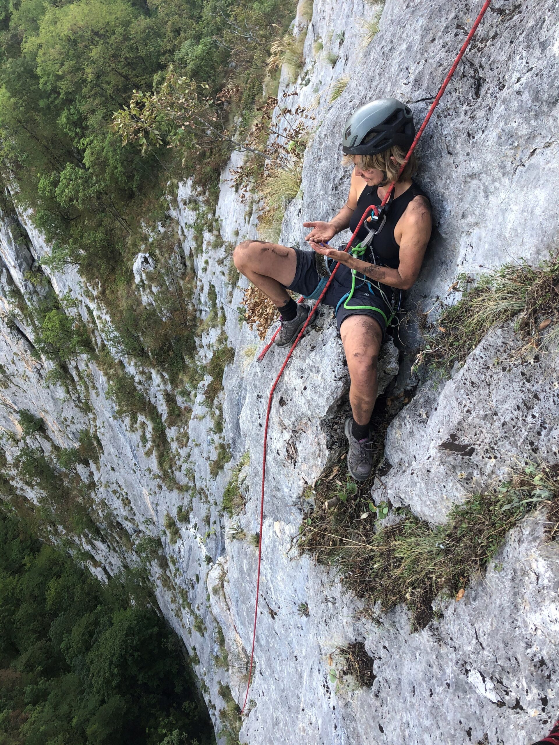 Et andet af områdets mest ikoniske crags er Rebro. Klatringen her er mere vertikal og teknisk. Det var ikke det sted, vi brugte mest tid, men blot at være der, var en kæmpe oplevelse! Klippen er kompakt og ligger på toppen af canyonen. Den står tyndt og gråt, som en hajfinne, der skærer sig vinkelret op af græsset. Der er også en fantastisk smuk, lille bjerghytte, som man kan overnatte gratis og respektfuldt i, eller som man bare kan søge læ under, hvis vejret bliver dårligt.