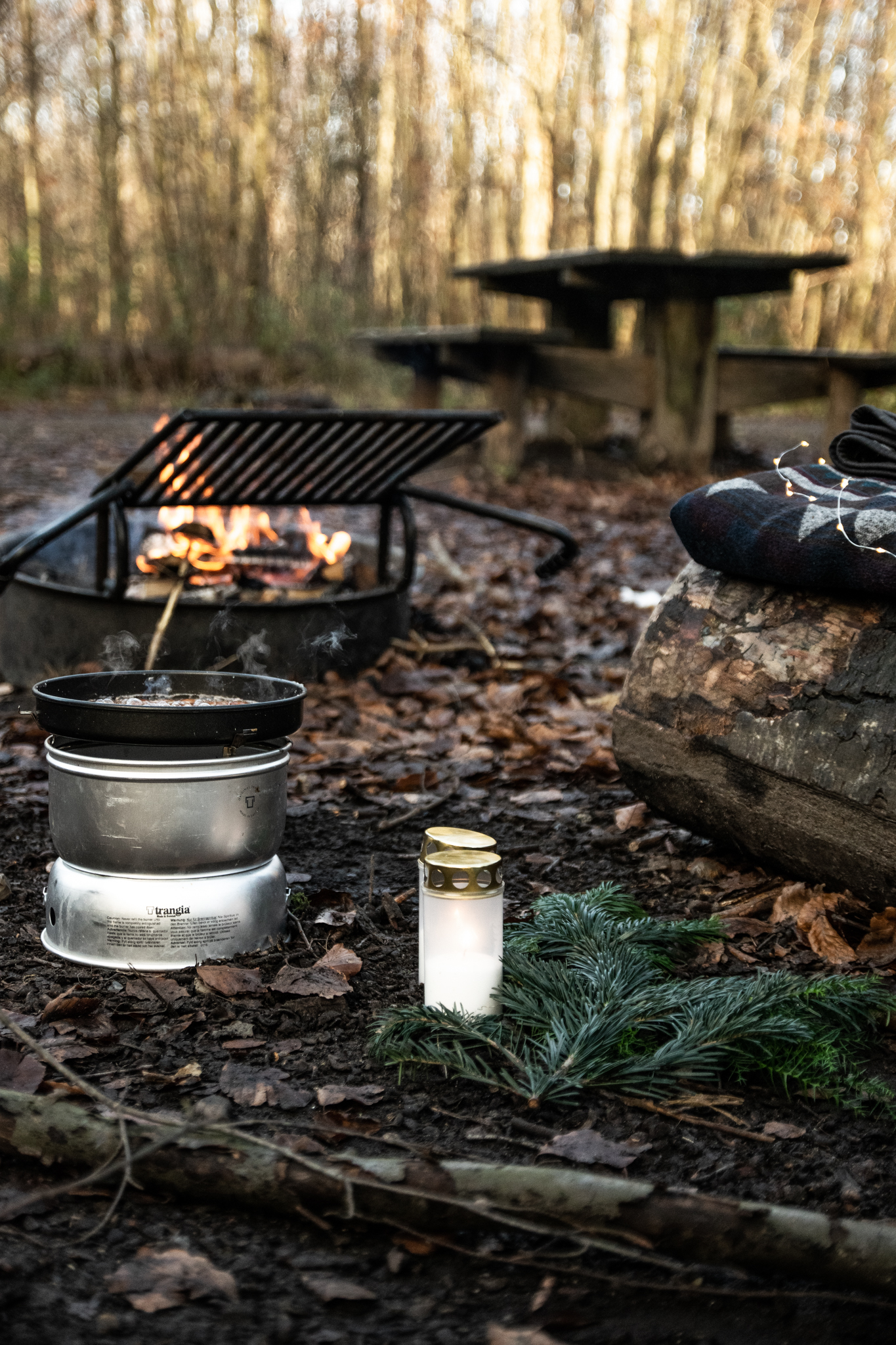 Pynt op med lys og lygter for ultimativ (jule)hygge og husk at tage varmt tøj på. Uldundertøj, hue og handsker er et must. Medbring også gerne tæpper og siddeunderlag for optimal komfort. Så er du klar til at lade duften af brændte mandler sprede sig til alle skovens beboere. Husk noget varmt at drikke; vi foreslår en kop varm og julekrydret gløgg samt varm kakao til de mindste.