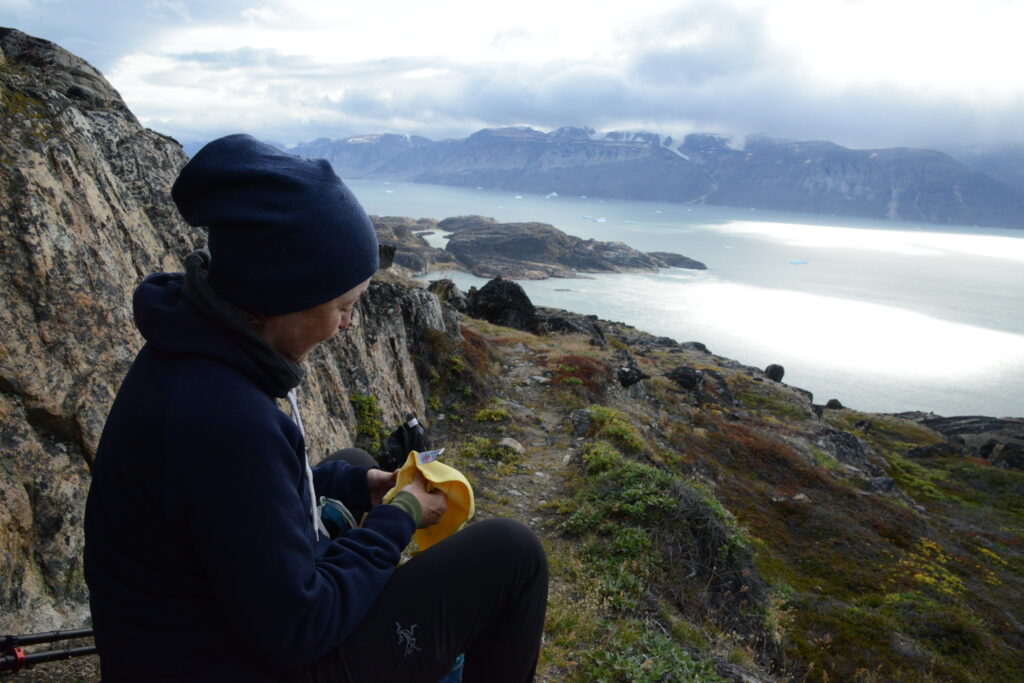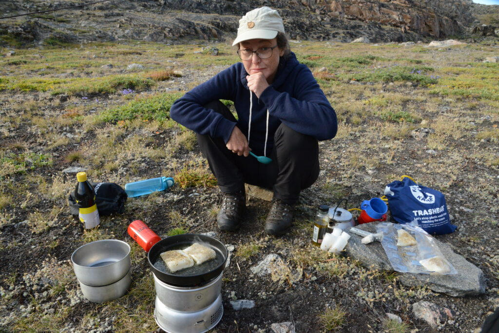 Det er en kølig morgen. Vi vågner i teltet og ser, at der er faldet nysne på fjeldtoppene bag lejren. Morgensolen skinner, kaffevandet snurrer i Trangia-kanden og der er rimfrost på græsset. Havet er spejlblankt, himlen er dybblå og luften er polarfrisk. Vi nyder udsigten, stilheden og den friskbryggede kaffe, mens vi varmer en grydefuld sortebær, vi har plukket lige ved teltet. To hvaler kommer op af vandet lige ud for kysten og viser rygfinne. Vi ser og hører deres blost. August måned og sommeren går på hæld. Det er vores sidste morgen i Qeqertarsuaq (Godhavn) på Disko-øen i Nordvestgrønland. I dag begynder vores hjemrejse efter godt to ugers fantastisk telttur i Grønland.