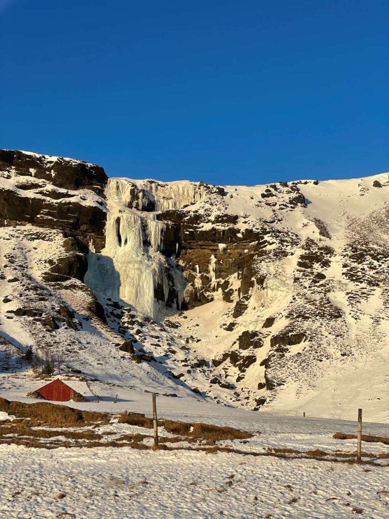 Kører du langs Road 1, som går rundt om Island, vil du se frosne vandfald efter frosne vandfald. Ofte behøver man slet ikke at lede efter dem på online-kortet, da man tydeligt ser dem, hvor end man kører hen – især sydpå.