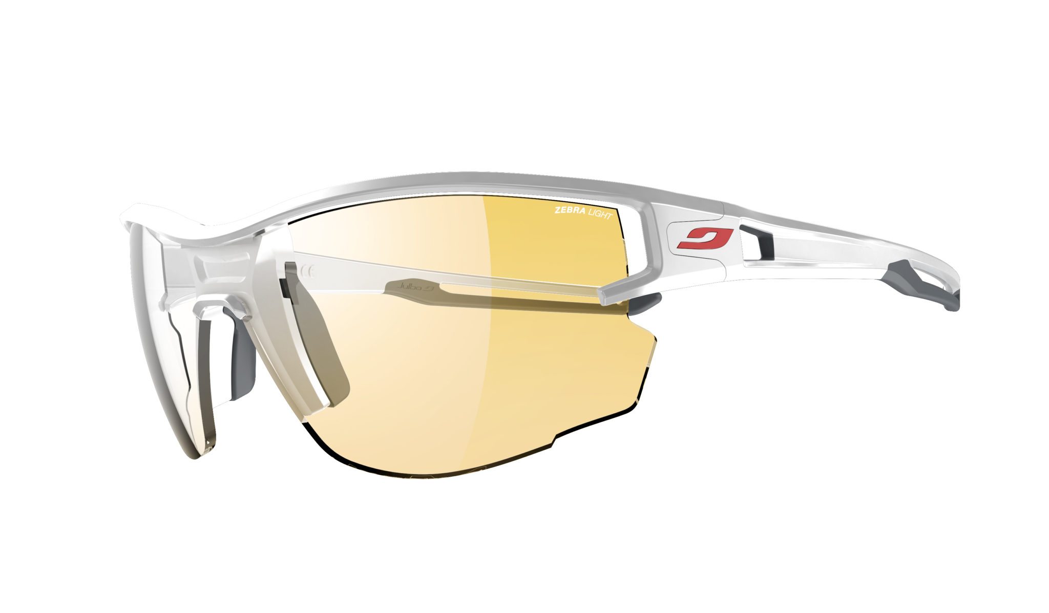 Julbo er især kendt for deres fotokromiske glas, der skifter farve og beskyttelsesgrad, når lyset skifter. Det gør, at man praktisk talt aldrig behøver at tage brillerne af, uanset om der er høj sol, skygge eller fladt lys og tåge. Aero og Aerolite fås med linsen “Zebra Light”, der dækker beskyttelseskategori 1-3 (ud af 4), og vil være perfekt til alt andet end de mest ekstreme lysforhold.